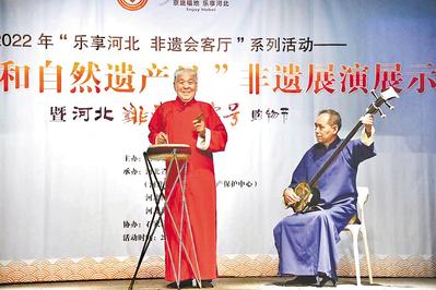 6月11日,“文化和自然遺產(chǎn)日”非遺展演展示暨河北非遺·老字號(hào)購物節(jié),在河北博物院舉辦。圖為京東大鼓展示表演。河北日?qǐng)?bào)通訊員 王 建攝
