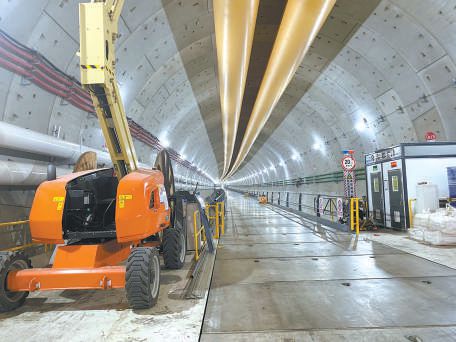 走進(jìn)項(xiàng)目工地,沒有想象中的機(jī)械轟鳴聲,施工現(xiàn)場位于幾十米深的地下。記者從地面乘坐直梯,順著盾構(gòu)機(jī)始發(fā)井,來到地下26米處的西線隧道內(nèi)。國產(chǎn)最大直徑泥水平衡盾構(gòu)機(jī)“京華號”,已在西線隧道里向前掘進(jìn)了近4000米。眼前的西線隧道,蜿蜒著向南延伸。開工初期,記者從始發(fā)井步行幾分鐘即可抵達(dá)盾構(gòu)機(jī)駕駛艙位置;這次采訪,施工方特意安排了1輛純電動代步車。“現(xiàn)在盾構(gòu)機(jī)離始發(fā)井有些遠(yuǎn),工作人員上下班都得坐車?!瘪{駛員說,這輛電動代步車是用吊車吊到隧道內(nèi)的,還特意為它在隧道里安了充電樁,“這輛車再回到地面,就得是隧道貫通的時候啦!”