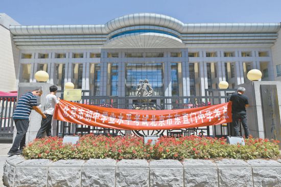 2022年北京中考今天開考,本市18個(gè)考區(qū)各類中考考點(diǎn)已全部準(zhǔn)備就緒。昨天,作為中考考點(diǎn)的北京東直門中學(xué)完成布置工作。本報(bào)記者 潘之望攝