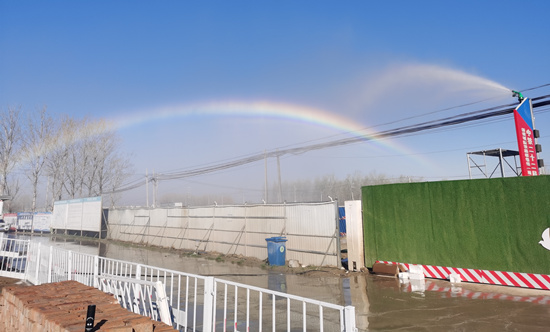 “該裝置可覆蓋整個存土場,噴灑射程在80-120米,保證施工過程中不起塵。現(xiàn)在我們是24小時運轉(zhuǎn),濕化作業(yè)。”佟峰說,高壓抑塵消防霧炮系統(tǒng)運行分自動控制和手動控制兩種運行方式,在手機(jī)APP上可以隨意設(shè)定噴淋時長、水霧大小、噴淋方向等。另外,為保證施工現(xiàn)場的干凈整潔,項目部還在施工便道上設(shè)置了30米自動洗車棚,讓工地運送物資的車輛始終光亮嶄新。