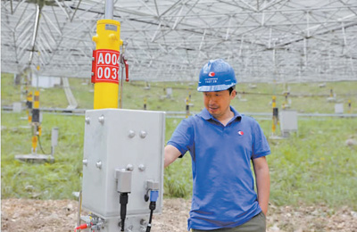 姜鵬在“中國天眼”現(xiàn)場檢查保動器的運行情況。