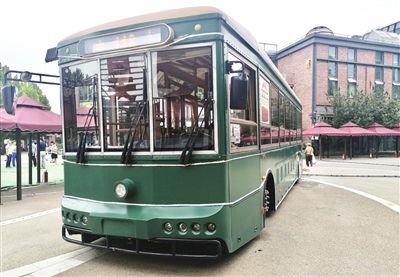 “鐺鐺車”長(zhǎng)約12米,車身為啞光墨綠色,深沉典雅。走進(jìn)車廂,棕紅色地板、仿木質(zhì)結(jié)構(gòu)座椅、同色系車窗和書架,每一處都彰顯經(jīng)典。