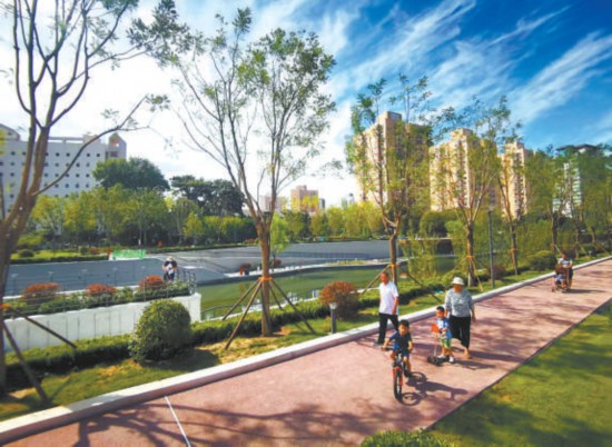 亮馬河國際風(fēng)情水岸的總面積80萬平方米,其中可供市民休閑的公共空間就占了75%。有幼兒園的河段,建起了兒童攀爬墻,有老小區(qū)的河段,健身設(shè)施就格外多。濱河綠道從東直門外斜街一路蜿蜒至四環(huán)路,與朝陽綠道銜接,橋下空間也打通了,沿河遛彎兒的人不必再穿行市政道路。