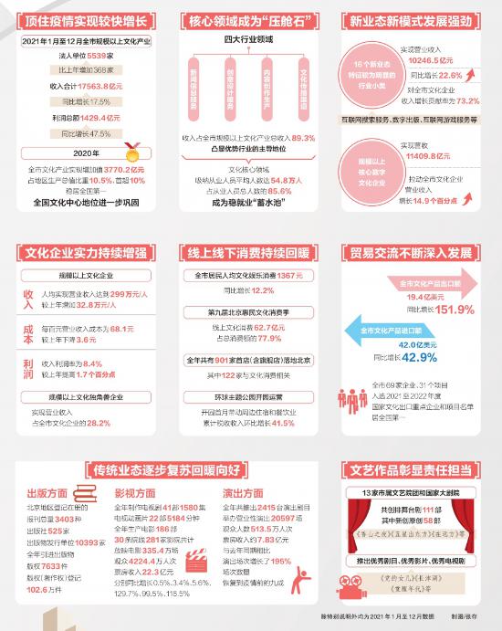2021年是“十四五”開局之年,北京文化產(chǎn)業(yè)發(fā)展圍繞落實習近平總書記關(guān)于文化建設(shè)的重要論述,服務(wù)國家文化發(fā)展戰(zhàn)略,立足推進全國文化中心建設(shè),以高質(zhì)量發(fā)展為主線,在疫情防控常態(tài)化形勢下,積極主動應(yīng)變求新、穩(wěn)中求進,實現(xiàn)了“十四五”時期的良好開局。