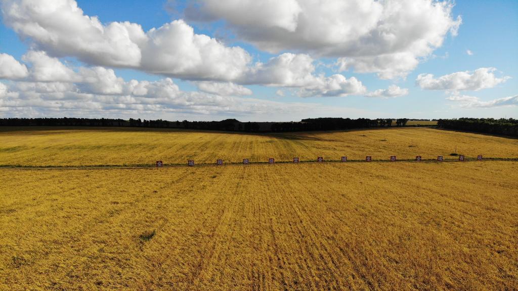 黑龍江省依安縣一處連片種植大豆的地塊,廣闊平整。進入九月,這里的大豆鼓粒期已過,大豆干物質(zhì)積累完成,地里已經(jīng)看不見人在忙碌,只待大豆成熟,開始收割。