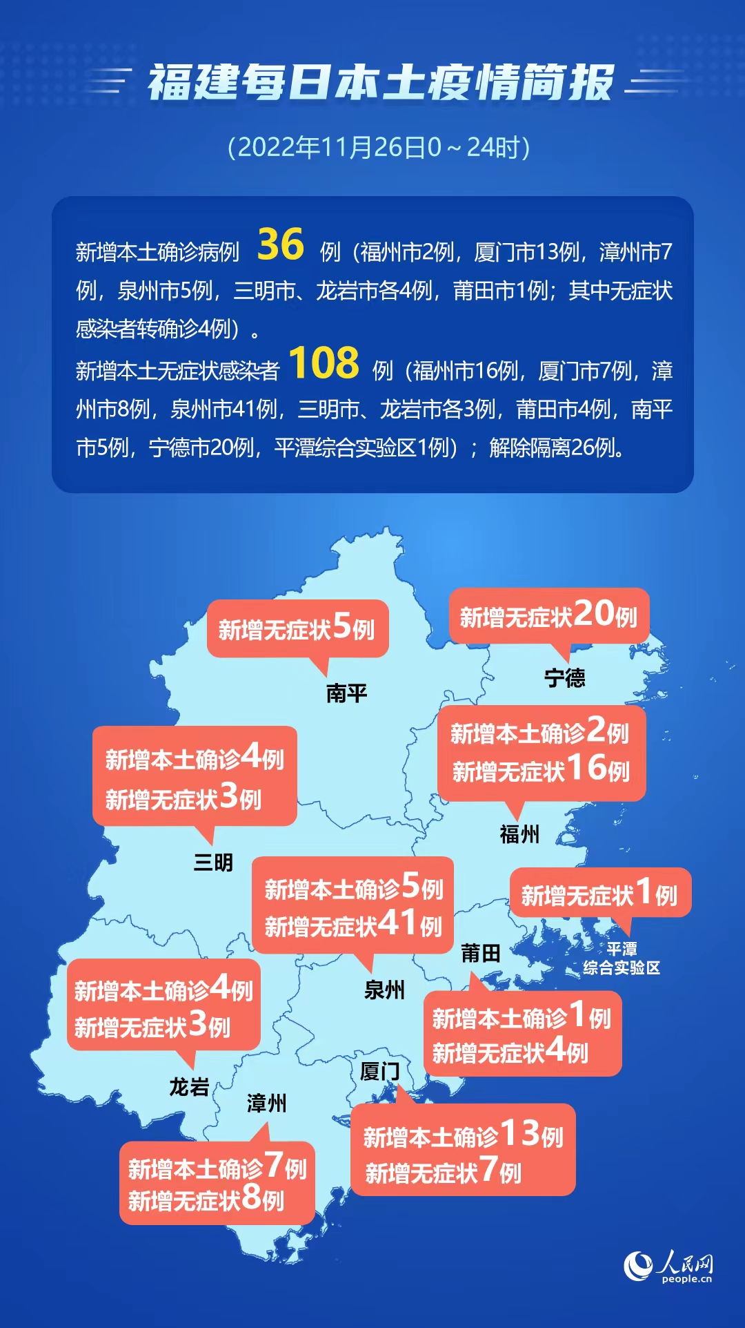11月26日福建新增本土36+108 其中泉州46例、廈門20例、福州18例