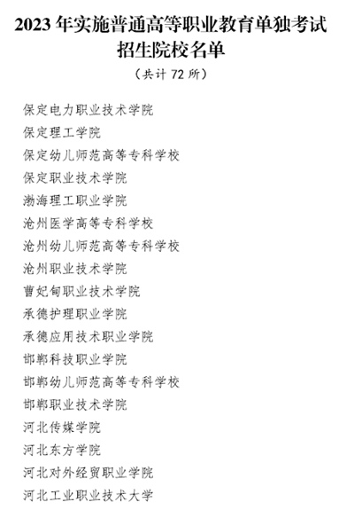 2023年河北72所高職院校實施單獨(dú)考試招生