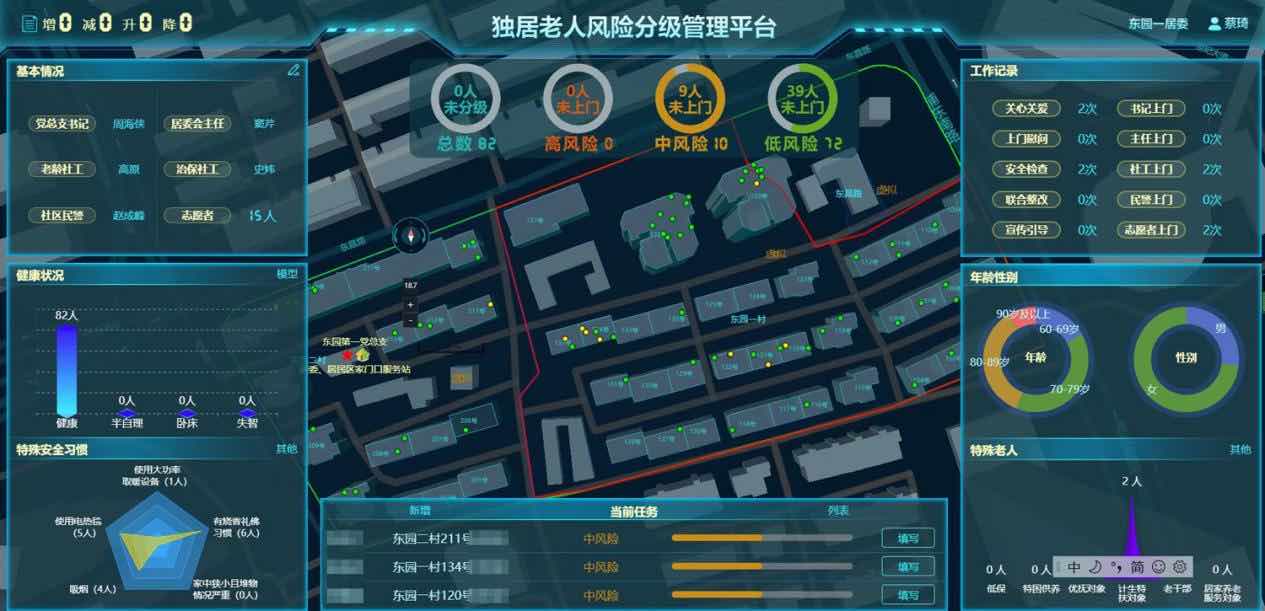 獨居老人風險分級管理平臺。東一居民區(qū)供圖