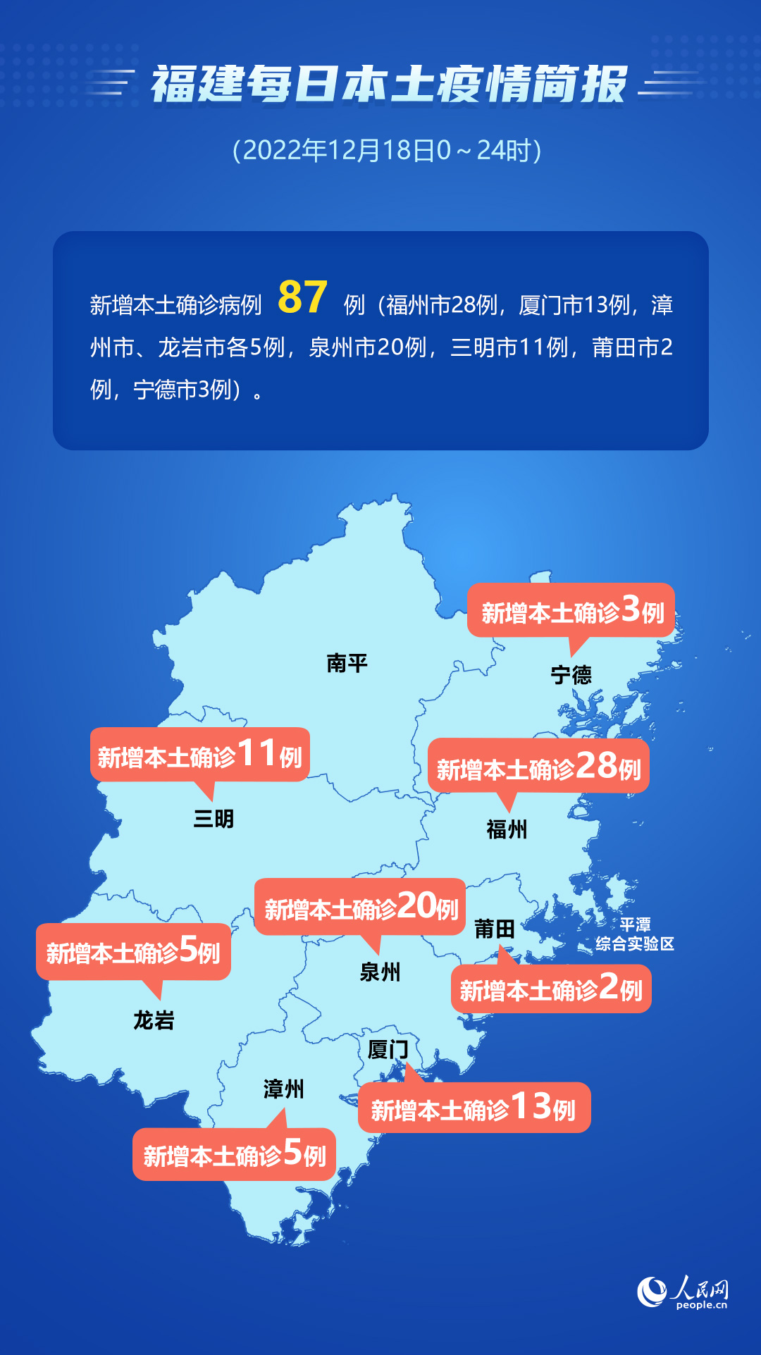 12月18日福建新增本土確診87例 其中福州28例、泉州20例