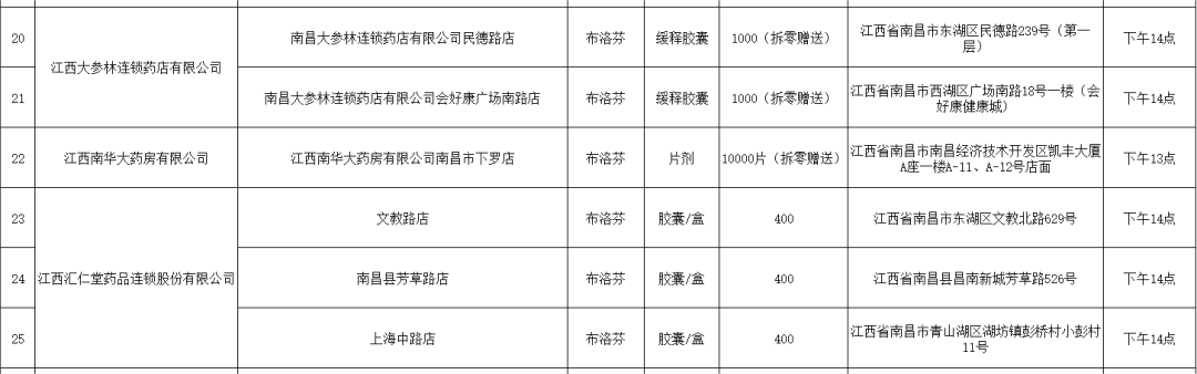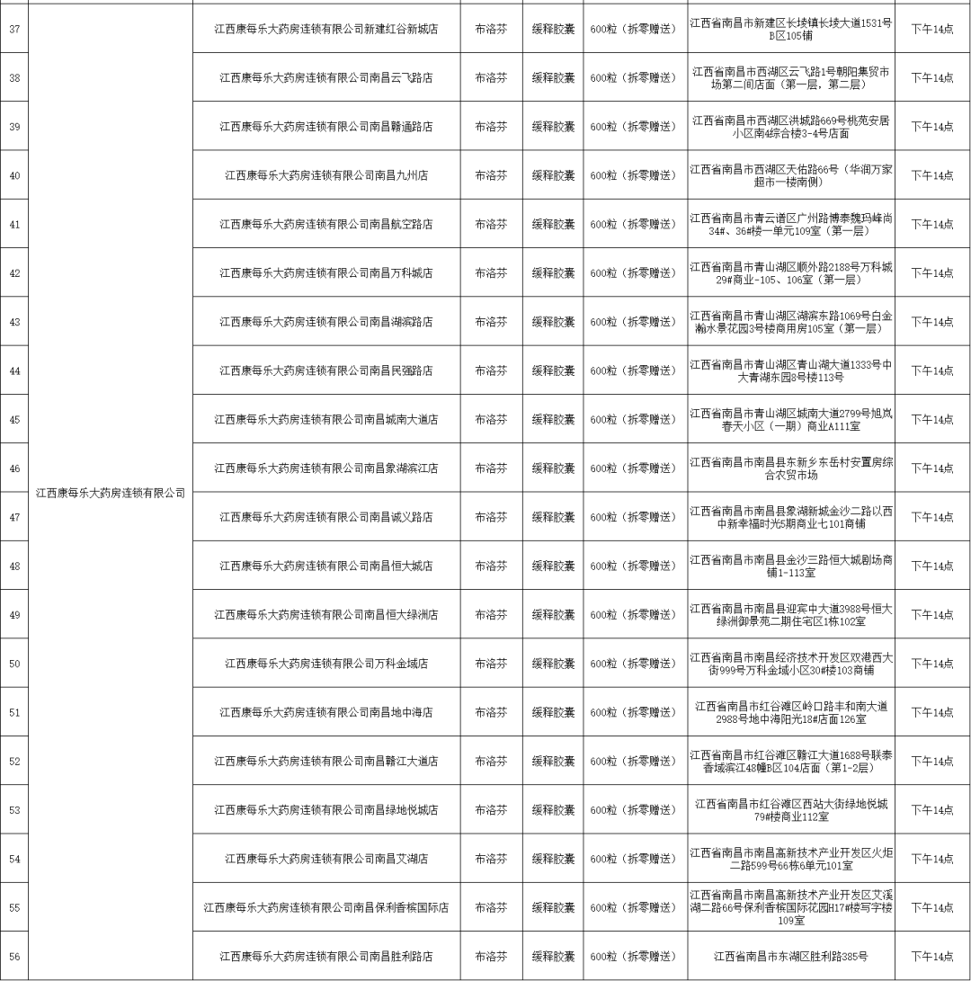 21日,南昌市市場監(jiān)督管理局公布退熱藥品投放名單(第二批),本批次名單共公布7家藥品零售企業(yè)共56家藥店的退熱藥品投放信息,分別是:江西黃慶仁棧華氏大藥房有限公司、江西大參林連鎖藥店有限公司、江西南華大藥房有限公司、江西匯仁堂藥品連鎖股份有限公司、江西昌盛大藥房有限公司、江西益豐大藥房連鎖有限公司、江西康每樂大藥房連鎖有限公司。