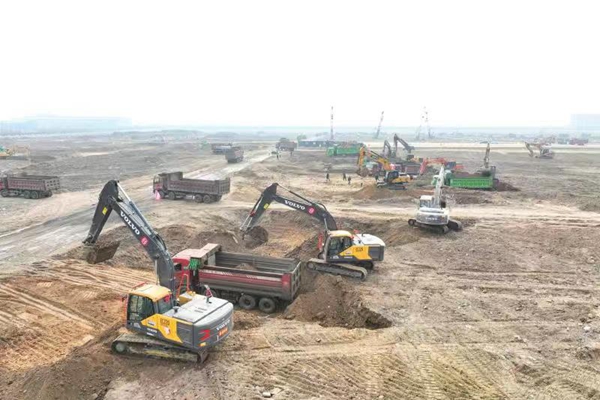 豐海丙烷綜合利用項目現(xiàn)場,工程機械不停歇。贛榆區(qū)委宣傳部供圖