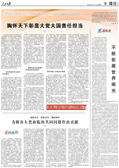 中國(guó)共產(chǎn)黨是為中國(guó)人民謀幸福、為中華民族謀復(fù)興的黨,也是為人類謀進(jìn)步、為世界謀大同的黨。我們要拓展世界眼光,深刻洞察人類發(fā)展進(jìn)步潮流,積極回應(yīng)各國(guó)人民普遍關(guān)切,為解決人類面臨的共同問題作出貢獻(xiàn),以海納百川的寬闊胸襟借鑒吸收人類一切優(yōu)秀文明成果,推動(dòng)建設(shè)更加美好的世界。深刻認(rèn)識(shí)和把握“六個(gè)必須堅(jiān)持”系列理論版今天推出第六期,圍繞“必須堅(jiān)持胸懷天下”進(jìn)行闡述。