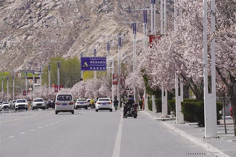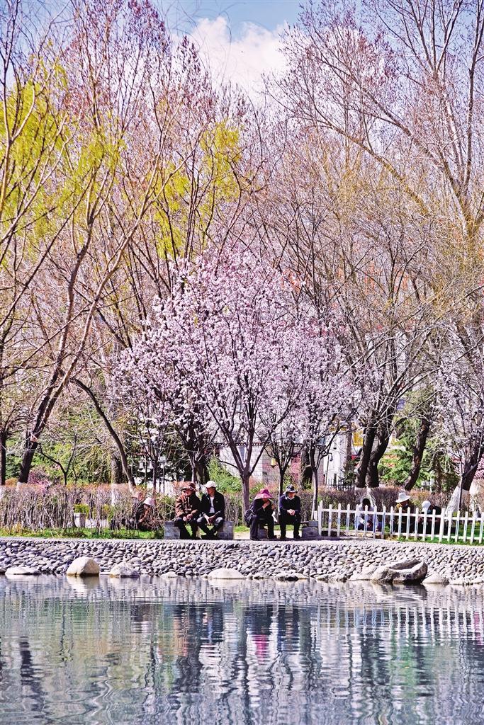 那么,去哪里查收這份“春日限定大禮包”呢?最近幾天,記者的朋友圈都被帕崩崗的美景霸屏了,一波又一波的朋友到這里打卡。除了去帕崩崗賞桃花,更不容錯(cuò)過的一定是拉薩大街小巷以及公園中驚鴻一瞥的美景。宗角祿康公園植被繁茂、古樹較多,一到春季,玫粉色的榆葉梅綻放枝頭,層層花瓣在陽光的照耀下嬌俏動(dòng)人,一樹粉色花朵倒映在幽綠的湖水中,盡顯詩意。此外,緊鄰羅布林卡的羅堆東路也有意想不到的美景,每到這個(gè)季節(jié),紅葉李便會(huì)沿路盛開,淡粉色的花瓣搭配深紅色的花蕊,甚是好看。金珠西路沿途的景色也令人耳目一新,淡粉色的花朵肆意綻放,等紅燈時(shí)的心情因這些花朵變得不再焦灼。