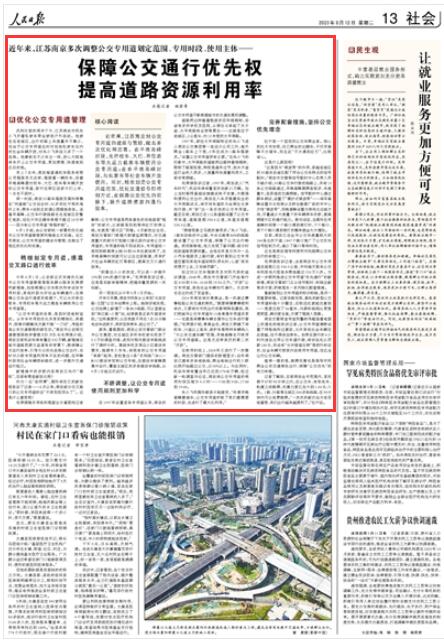 人民日報|江蘇南京:保障公交通行優(yōu)先權(quán) 提高道路資源利用率