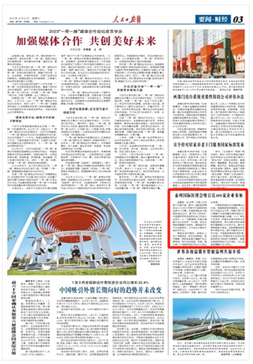 人民日?qǐng)?bào)海外版:泰州國際醫(yī)博會(huì)吸引近600家企業(yè)參加
