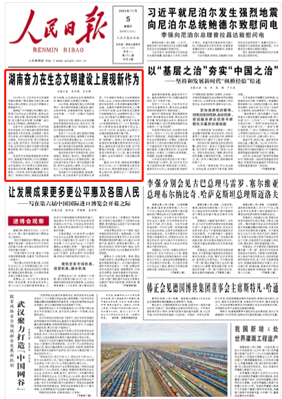 人民日報頭版頭條聚焦丨湖南奮力在生態(tài)文明建設上展現(xiàn)新作為
