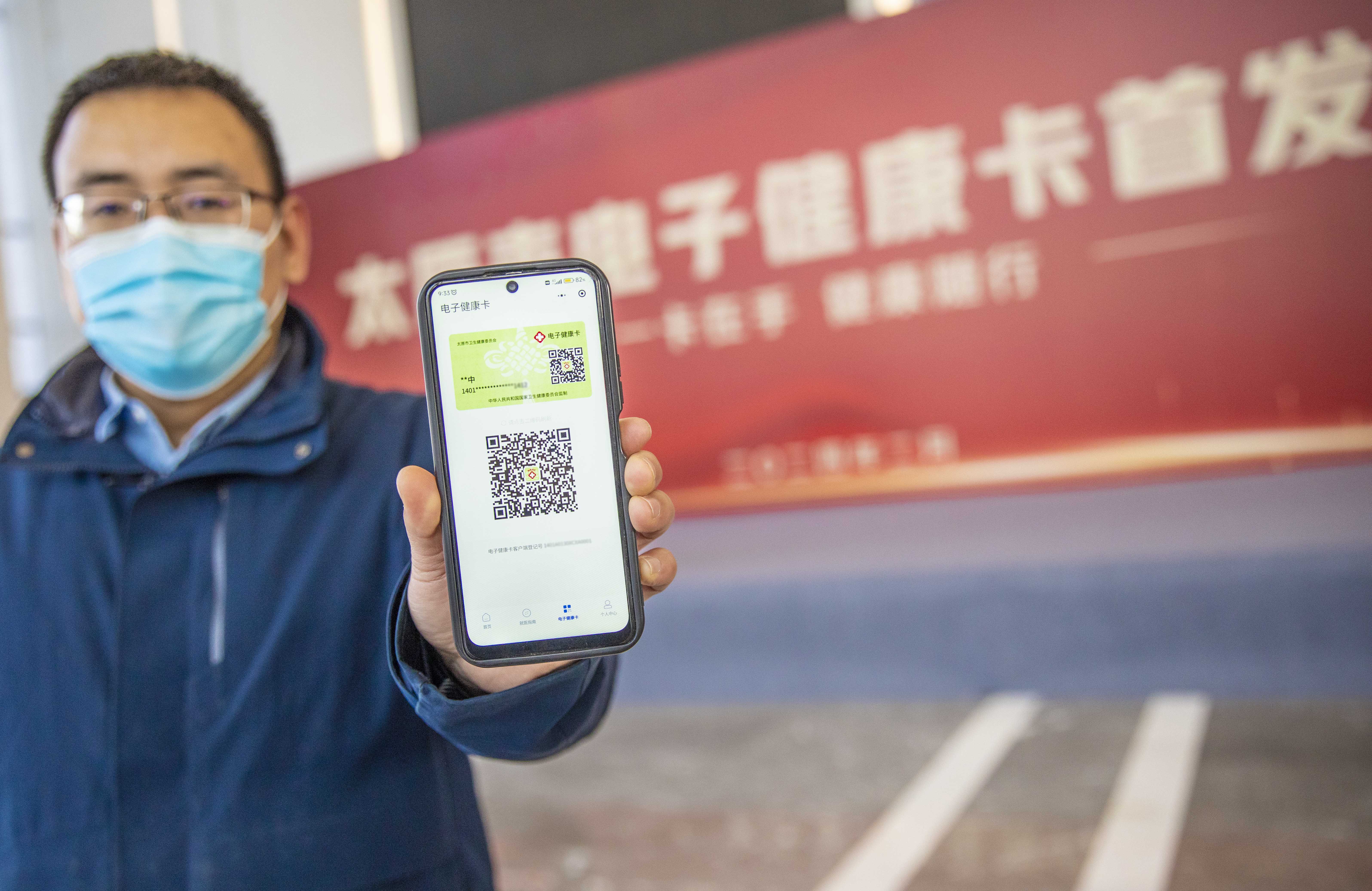 市民掃碼注冊太原市電子健康卡。人民網記者王帆攝