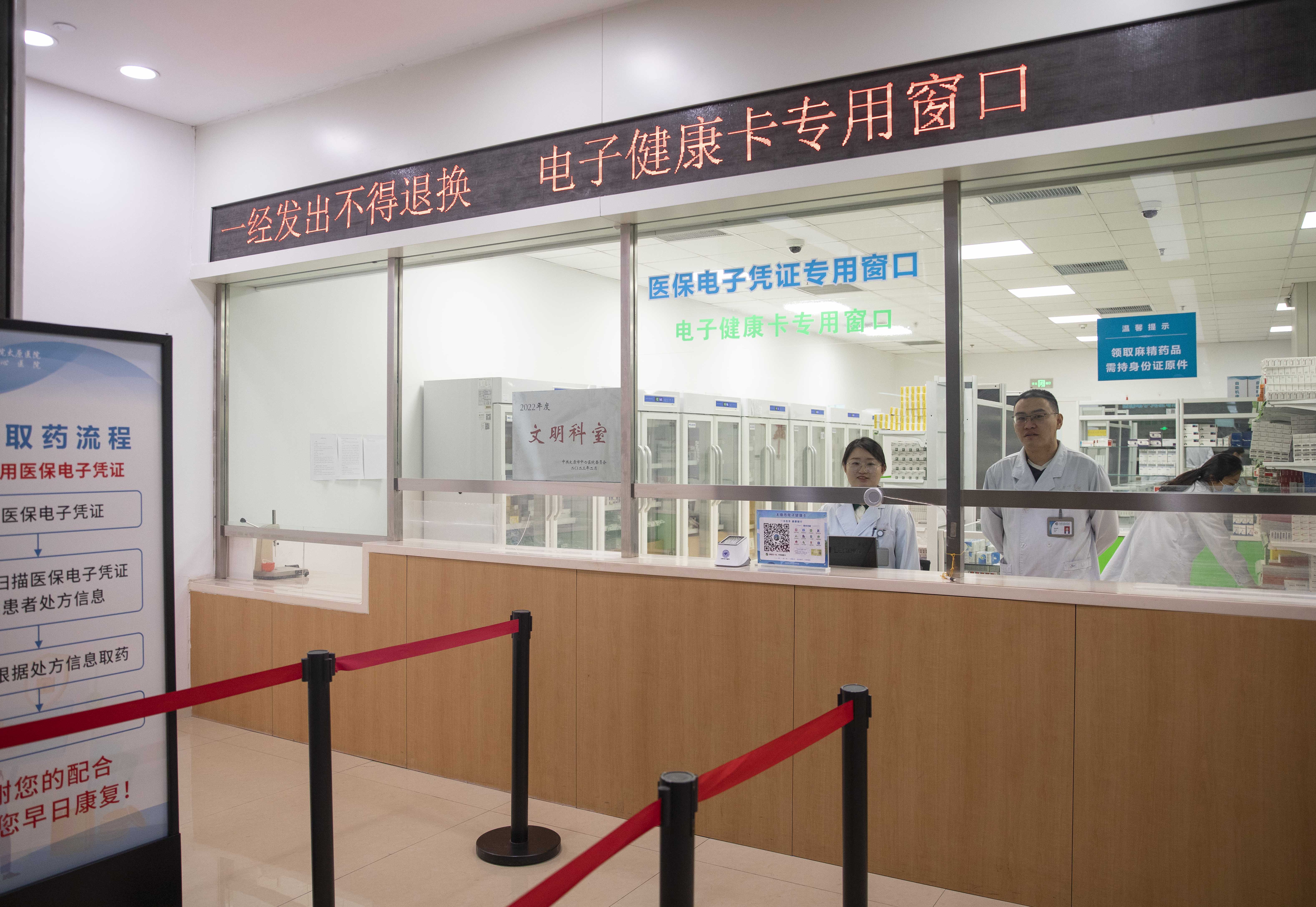 北大醫(yī)院太原醫(yī)院(市中心醫(yī)院)汾東院區(qū)電子健康卡專用取藥窗口。人民網記者王帆攝