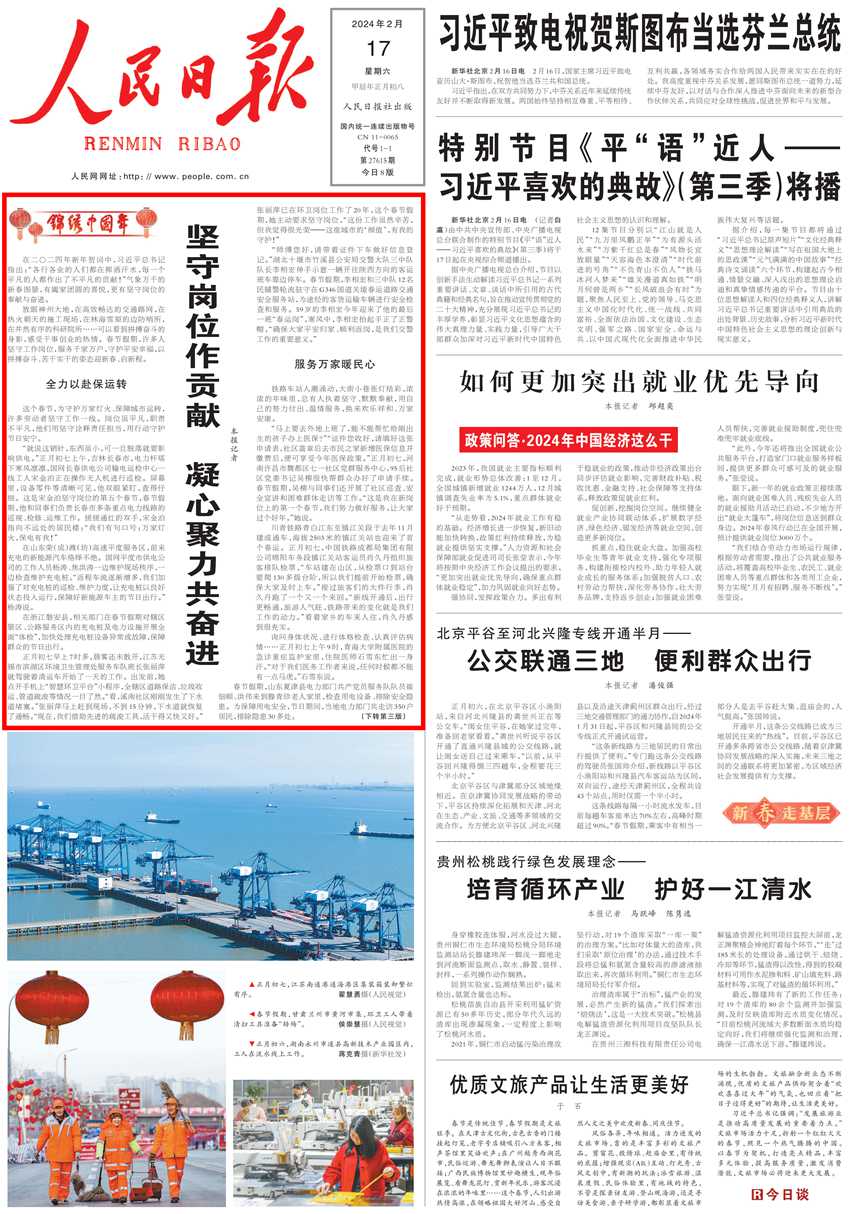 人民日報頭版頭條關(guān)注吉林等地:堅守崗位作貢獻 凝心聚力共奮進
