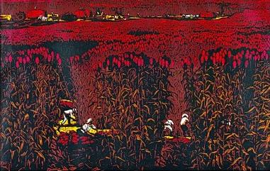 “大風(fēng)景、小人物”的組織方法正是晁楣對(duì)于特定題材所選擇的特定表現(xiàn)方式,是形式與內(nèi)容相適應(yīng)的結(jié)果,最終使得他的版畫創(chuàng)作實(shí)現(xiàn)了當(dāng)代性與民族性的高度統(tǒng)一,成為時(shí)代的經(jīng)典。