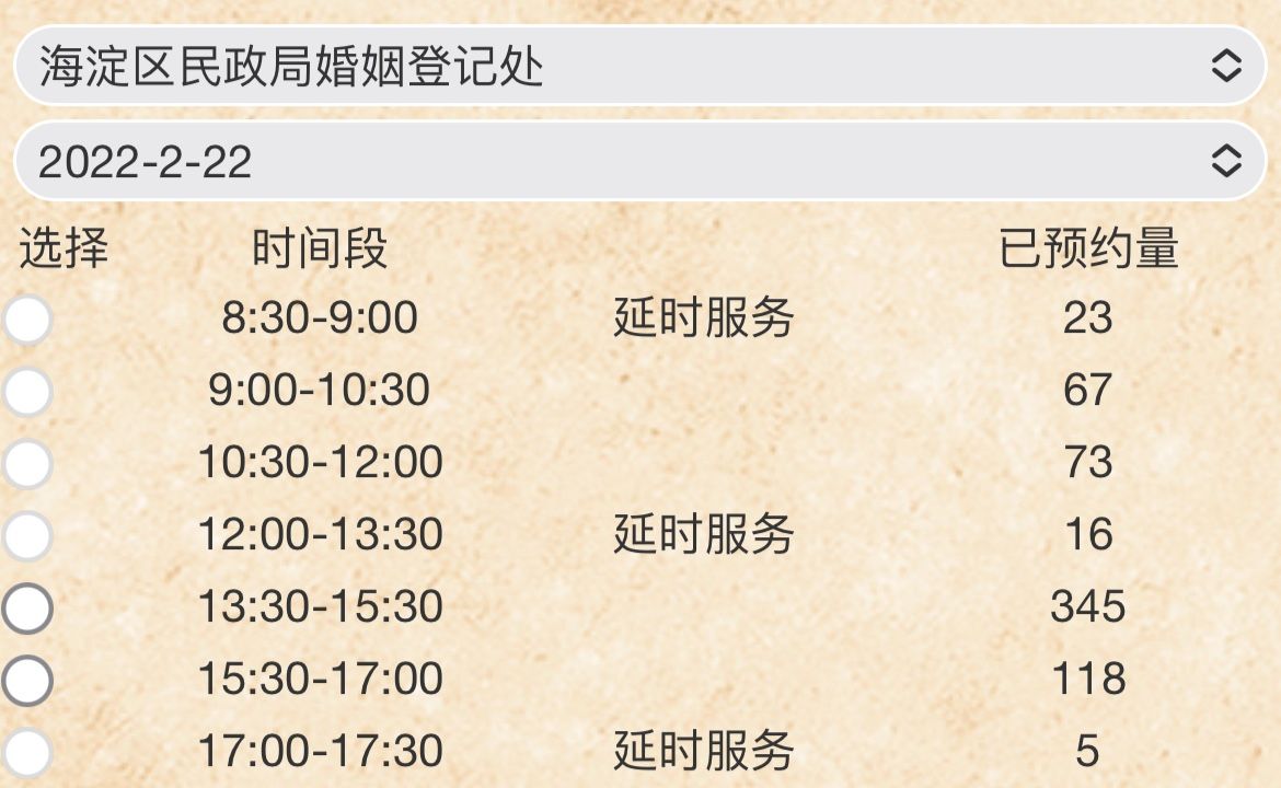 北京各區(qū)2月22日婚登預(yù)約火爆,多個(gè)時(shí)段已滿額