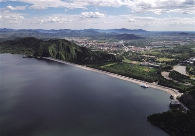 2021年8月26日,航拍密云水庫大壩。新京報記者 李木易 攝