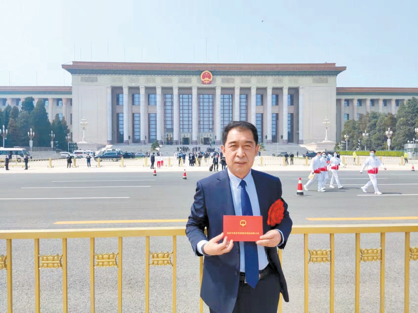 獲評“北京冬奧會冬殘奧會突出貢獻個人”當天,李剛在人民大會堂前拍照留念。