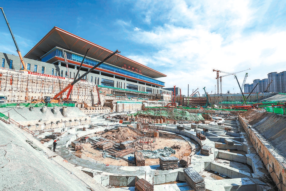 北京朝陽站(原星火站)是《北京城市總體規(guī)劃(2016年-2035年)》確定的本市鐵路對外客運(yùn)樞紐之一。北京朝陽站交通樞紐工程總建筑面積13.3萬平方米,包括北側(cè)公交立體停車樓和南側(cè)樞紐換乘大廳。同時,地鐵星火站作為地鐵3號線、R4線的換乘站,位于交通樞紐地下,基坑最深處位于地下40米,相當(dāng)于13層住宅樓的高度。