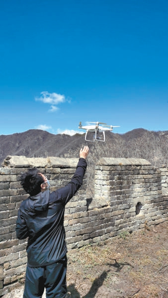 數(shù)據(jù)采集采用傾斜攝影、激光雷達(dá)、三維激光雷達(dá)等多源融合、空地融合技術(shù),盡可能完整地獲取長城高精度三維數(shù)據(jù)?!皟A斜攝影的無人機(jī)上搭載的相機(jī)有5個鏡頭,根據(jù)預(yù)先設(shè)定的航線,5個攝像頭可以從5個角度同時拍攝到墻體、地面等,采集到更完整、更精準(zhǔn)的數(shù)據(jù)?!爆F(xiàn)場技術(shù)負(fù)責(zé)人亢瑋介紹。無人機(jī)飛不了的敵臺,就人工拍攝,一個保存相對完整的敵臺需要拍3000張左右的照片。