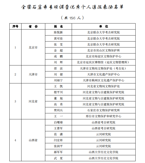 國(guó)家文物局通報(bào)表?yè)P(yáng)全國(guó)石窟寺專項(xiàng)調(diào)查先進(jìn)單位和優(yōu)秀個(gè)人