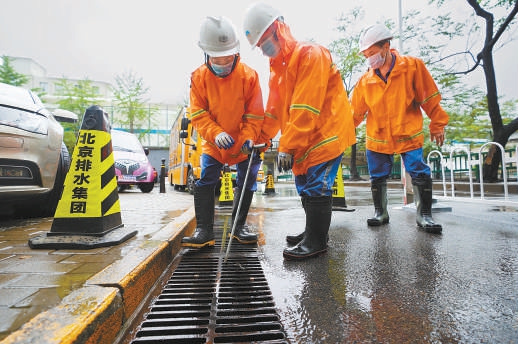 昨天9時許,在朝陽區(qū)管莊路上的一處排水口旁,兩名北京排水集團的防汛人員先用錐桶做好警戒防護,接著用鉤子鉤起雨水箅子,加速排水。在朝陽區(qū)金泰橋下凹橋區(qū),北京排水集團壩河流域分公司的工作人員早六時就到達現場進行值守。“這個點位地勢較低,短時雨量大的情況下容易造成積水,為避免影響交通,我們提前做好了準備。”現場一位工作人員說。