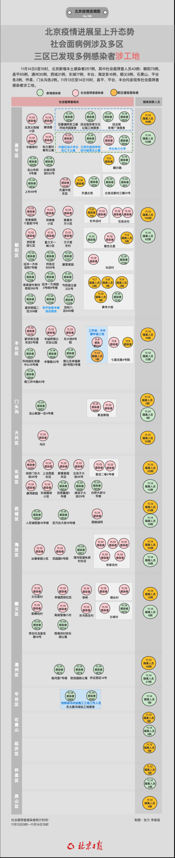 值得注意的是,11月13日至14日15時,已有豐臺、昌平、平谷三區(qū)報(bào)告感染者涉工地。其中