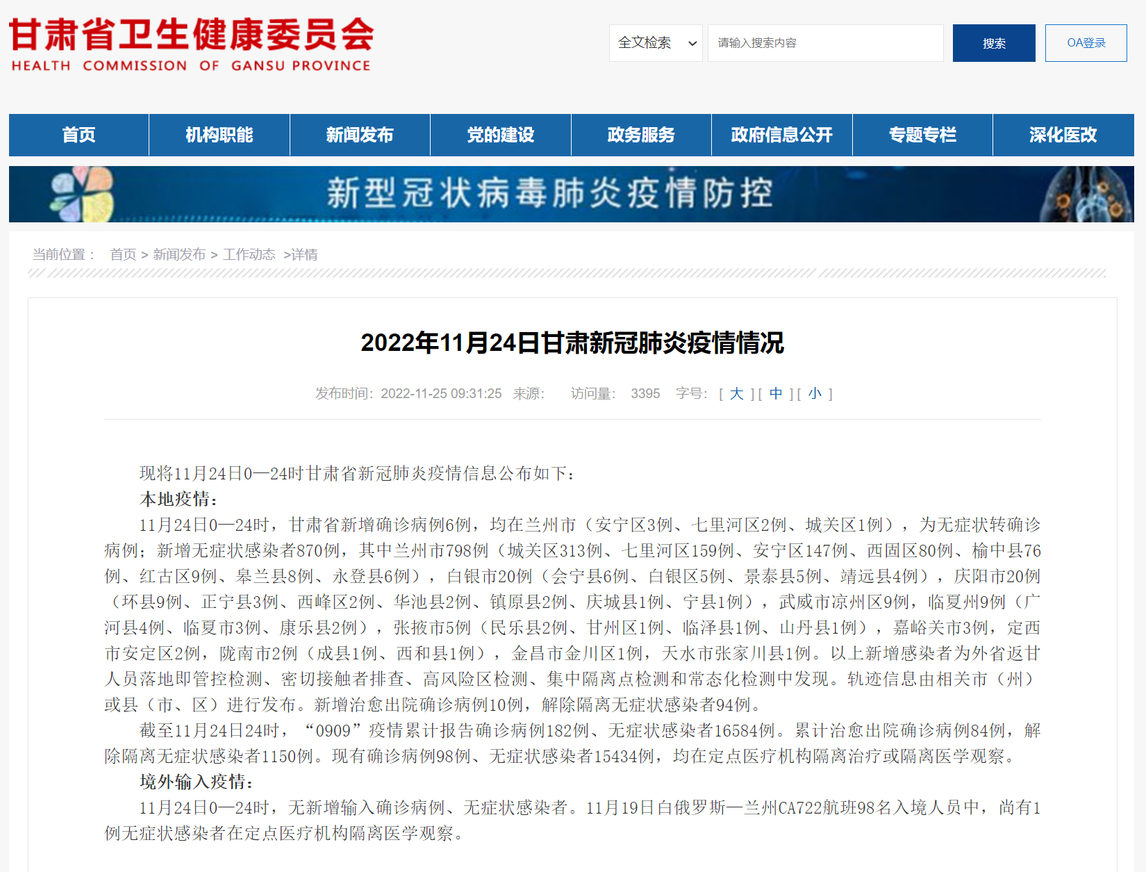 甘肅省衛(wèi)健委官網(wǎng)截圖