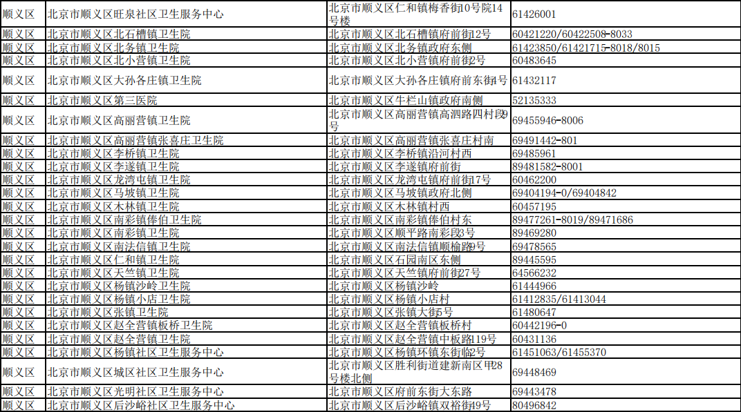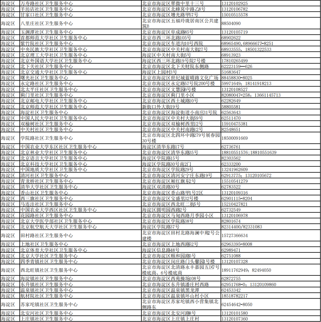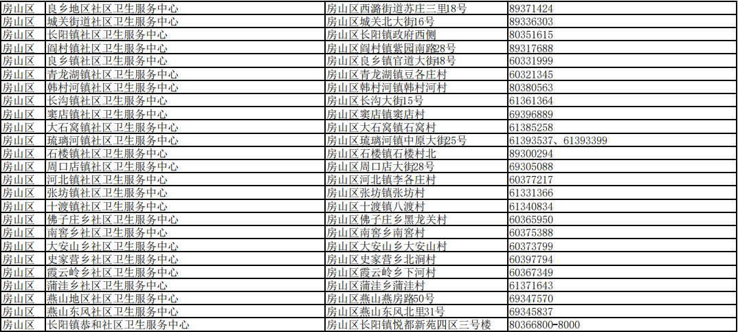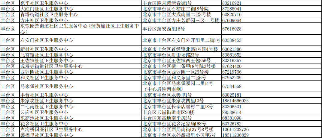 北京市接診發(fā)熱等11類癥狀患者社區(qū)衛(wèi)生服務(wù)中心名單