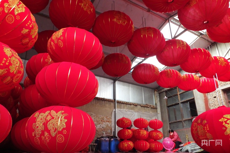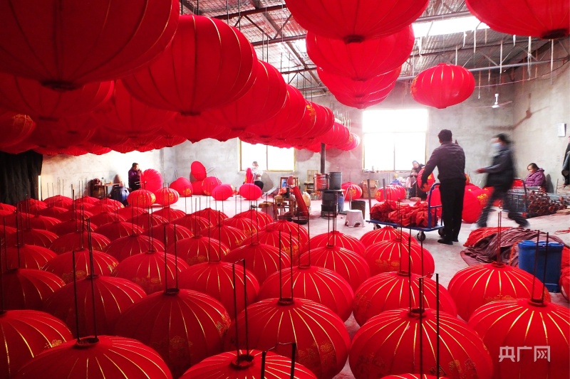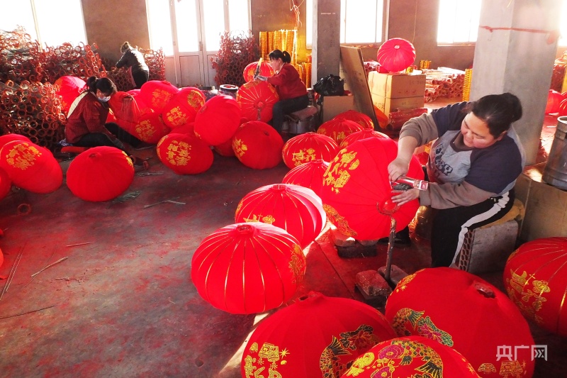 作坊內(nèi),滿屋燈籠紅(央廣網(wǎng)發(fā) 高新生 攝)