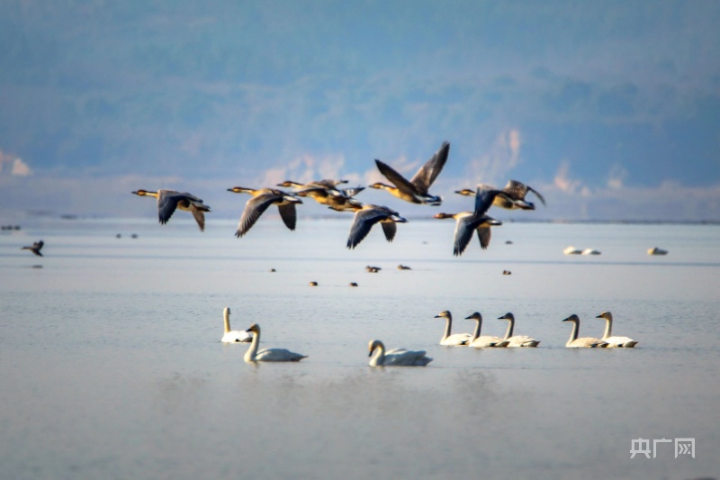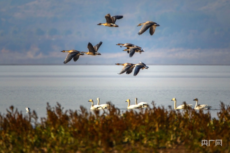 冬日暖陽(yáng)下,它們或在岸邊草叢覓食,或在水面交頸相依,時(shí)而引吭高歌,似為迎接新年的到來。