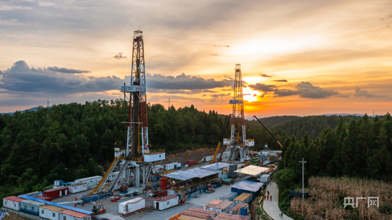 涪陵頁(yè)巖氣田鉆井井工廠航拍(央廣網(wǎng)發(fā) 涪陵頁(yè)巖氣田供圖)