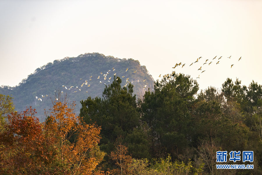 日前,在廣西百色市德??h城關鎮(zhèn)西讀村那西屯的田野上,成群白鷺或在覓食嬉戲、或在空中飛舞、或在樹梢停歇,與青山、綠水、紅楓構成一幅美麗的自然生態(tài)畫卷。