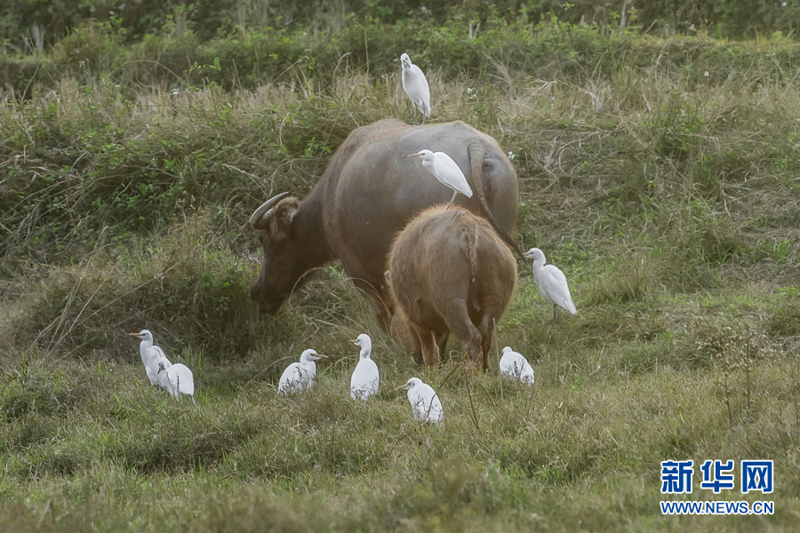 水牛與白鷺。賓綠濤 攝