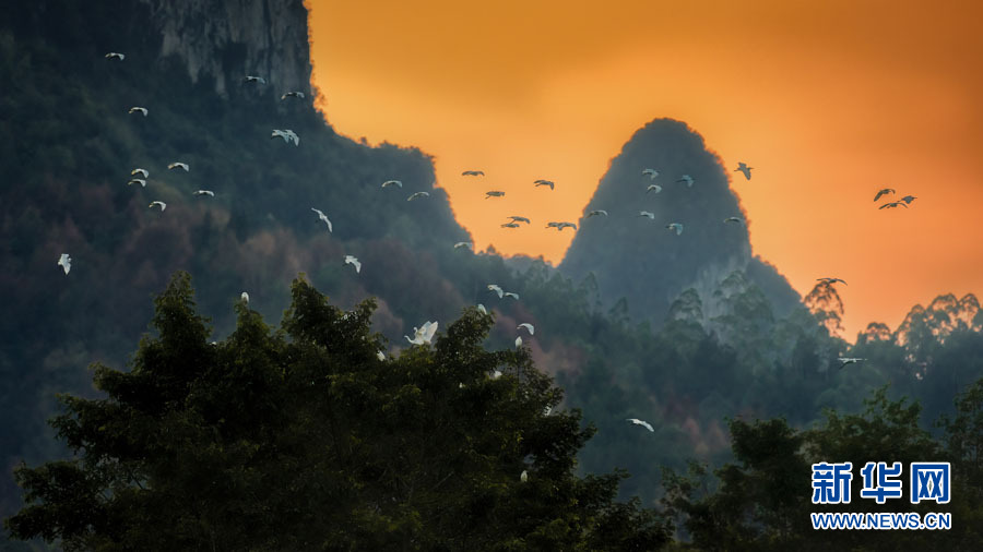 廣西德保:鄉(xiāng)村生態(tài)美 白鷺展翅飛