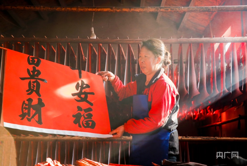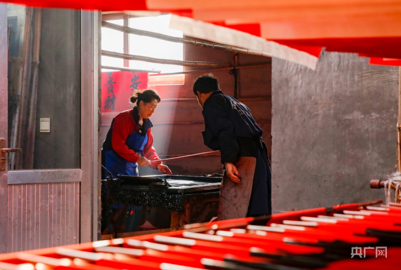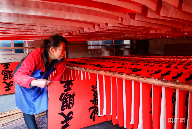 東李家村村民正在晾曬印刷好的春聯(lián)(央廣網(wǎng)發(fā) 郭連云攝)