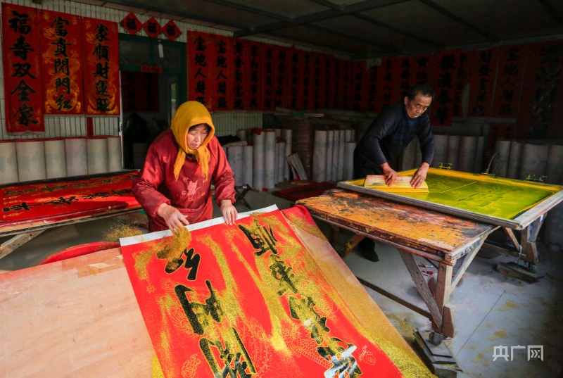 東李家村村民正在印刷春聯(lián)(央廣網(wǎng)發(fā) 郭連云攝)