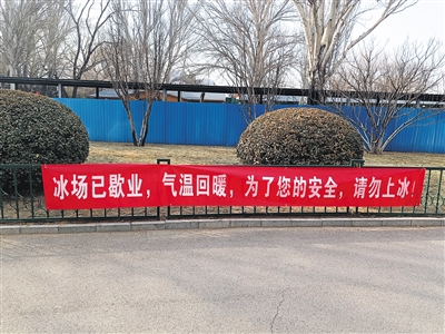 近期天氣轉(zhuǎn)暖,公園冰面雪面消融,北京全市公園及時調(diào)整冰場雪場開放和關(guān)停時間。北京市園林綠化局提醒,氣溫回升,冰面情況復(fù)雜,滑冰一定要選擇正規(guī)冰場,切勿“滑野冰”。