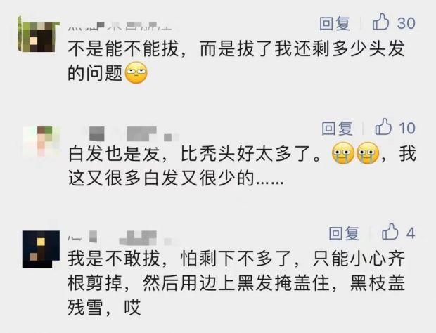 一些人在壓力較大時,可能會將疼痛感轉(zhuǎn)化為某種獲得感,在一定程度上緩解焦慮。但更多人是從拔白頭發(fā)這件事當(dāng)中獲得一種視覺上的自信——似乎又回到了頭發(fā)烏黑的時代。