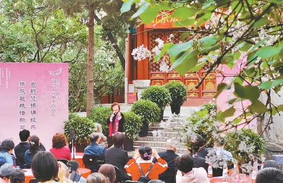 在10日的丁香詩(shī)會(huì)上,朗誦藝術(shù)家為觀眾帶來詩(shī)詞朗誦表演。本報(bào)記者 方非攝