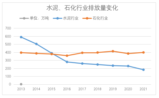 北京市水泥、石化重點(diǎn)碳排放單位歷年排放變化