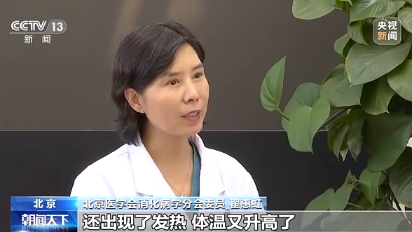 北京醫(yī)學(xué)會(huì)消化病學(xué)分會(huì)委員 翟惠虹:到了夏天的時(shí)候,如果當(dāng)您吃完了食物之后,莫名其妙地就開始嘔吐,伴隨著上廁所的次數(shù)增加,就要警惕了,有可能就是腸道感染了,最好及時(shí)到醫(yī)院去。那么如果在這個(gè)上吐下瀉的過程中,還出現(xiàn)了發(fā)熱、體溫又升高了,不管這個(gè)體溫是低熱還是高熱,我建議您一定要到醫(yī)院接受相應(yīng)的診斷和治療。