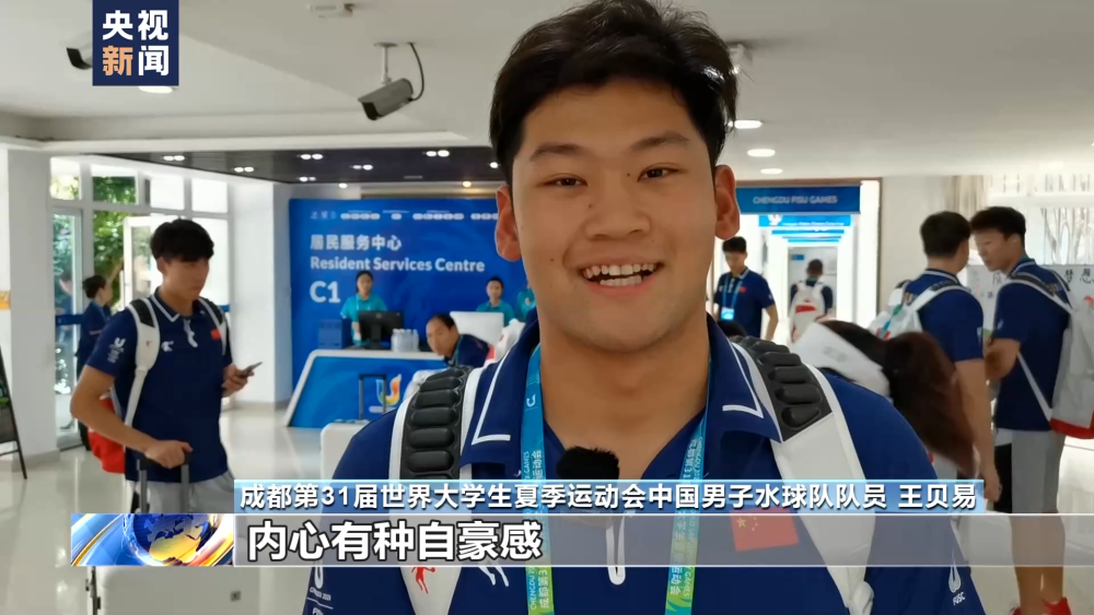 成都第31屆世界大學生夏季運動會中國男子水球隊隊員 王貝易:外面已經(jīng)看到我們中國隊的國旗了,內心有種自豪感。