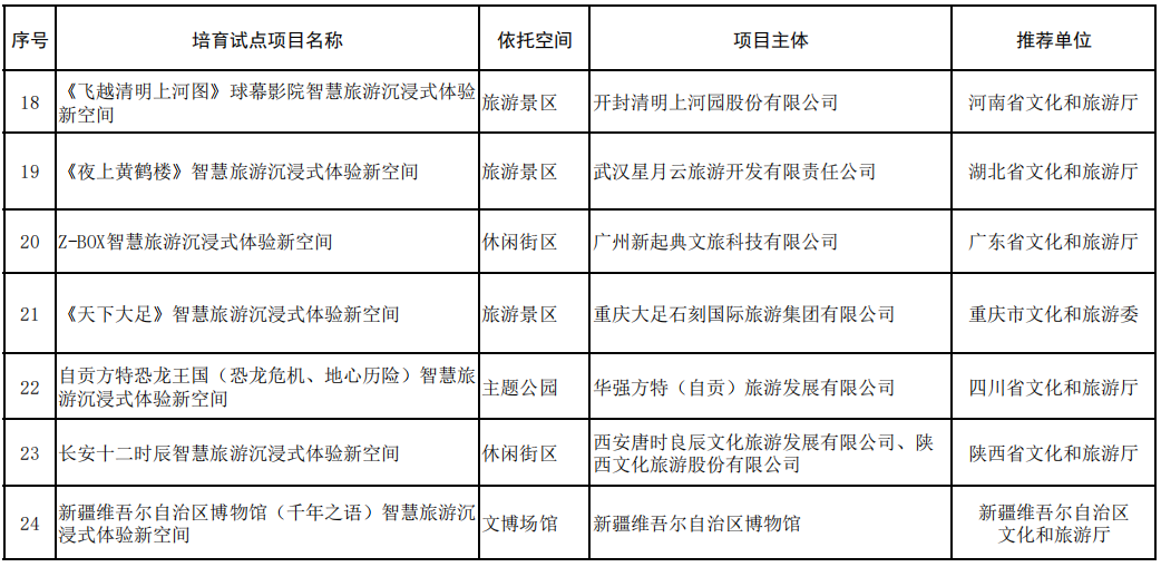 全國(guó)首批24個(gè)智慧旅游沉浸式體驗(yàn)新空間培育試點(diǎn)公示