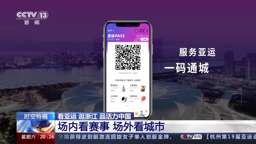 這樣細(xì)致、貼心的理念已經(jīng)滲透到了杭州公共服務(wù)的方方面面。還有更方便的,您看我手上這個二維碼叫亞運(yùn)pass碼,現(xiàn)在我們只要通過這一個二維碼,就可以乘公交、乘地鐵、景區(qū)入園等等功能,不用再在各種不同的二維碼之間來回切換了。